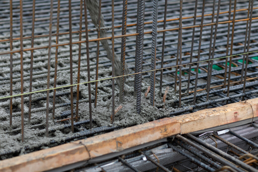 Und darüber wurde nun eine massive Betonplatte gegossen. Insgesamt 168 Kubikmeter auf die quadratische Fläche von 18 x 18 m. Fast 38 t Stahl sind darin versteckt und verleihen dem Fundament Zugfestigkeit.