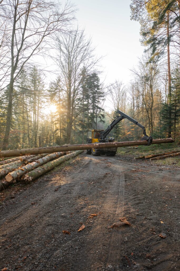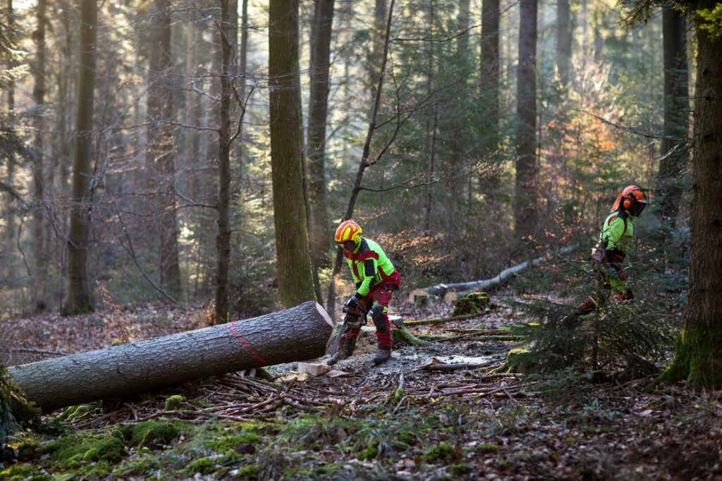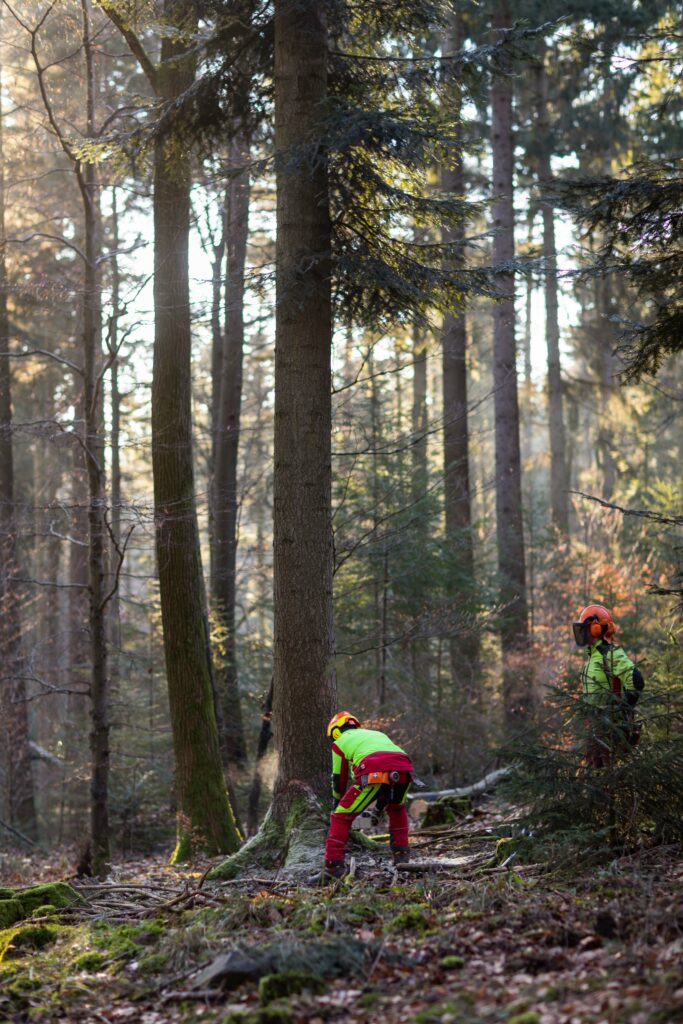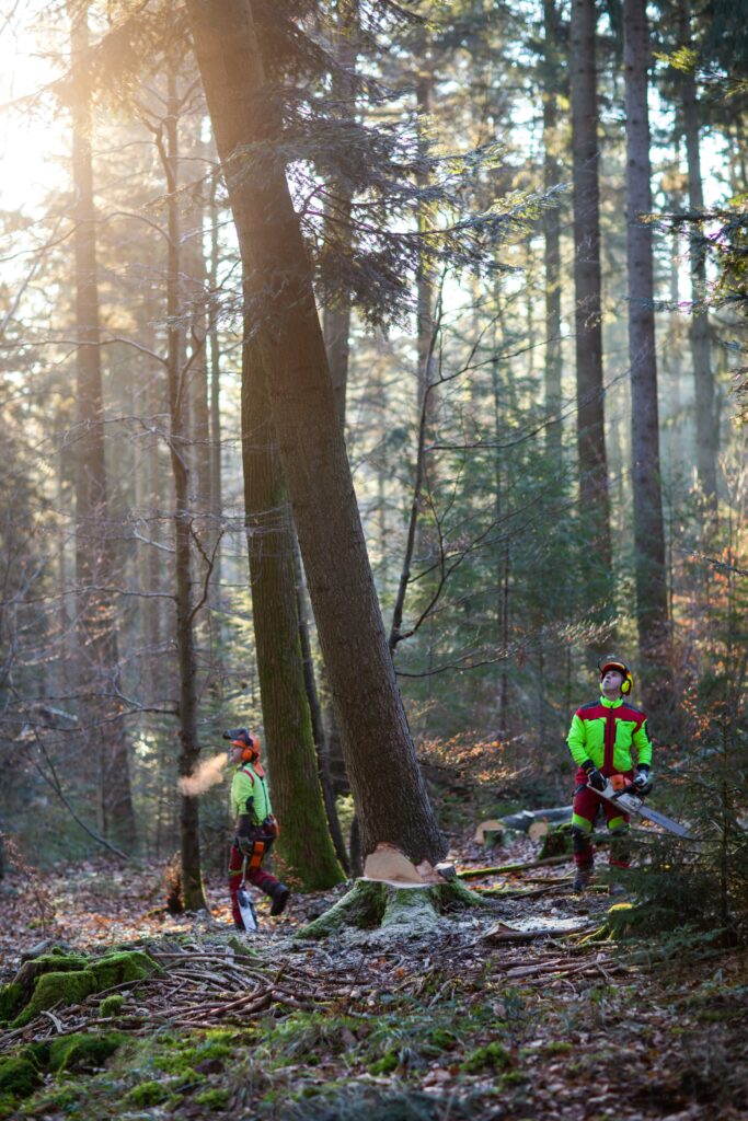 Ernte von 375 Kubikmetern Holz für CARL im Pforzheimer Stadtwald im Januar 2022. Holz ist nachhaltig und noch nachhaltiger ist es, wenn es aus der unmittelbaren Umgebung stammt. Dem Pforzheimer Stadtwald, der in erster Linie ein Erholungswald, weit weniger ein Wirtschaftswald ist, wird grundsätzlich nur so viel Holz entnommen, wie nachwächst. Das CARL-Holz wäre unter dieser Prämisse ohnehin geschlagen worden. Unterschied: es bleibt in der Stadt!